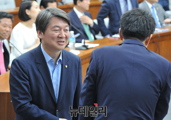 20대 국회가 시작 된 30일 오전 국회에서 열린 국민의당 의원총회에서 안철수 국민의당 상임공동대표가 의원들과 인사를 나누고 있다.