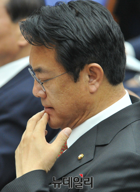 새누리당 정진석 원내표가 20대 국회가 시작된 30일 오전 국회에서 열린 의원총회에 앉아 회의를 지켜보고 있다.