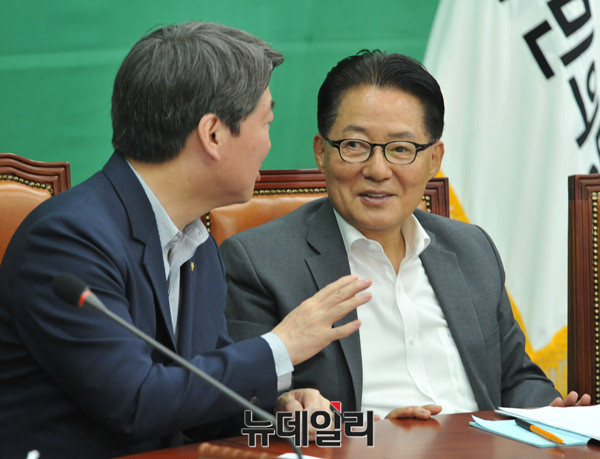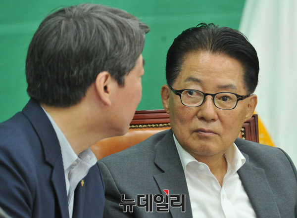 안철수 국민의당 상임공동대표가 1일 오전 국회 당대표실에서 열린 최고위원회의에 참석해 박지원 원내대표와 대화를 나누고 있다.