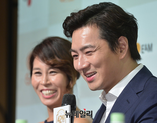 뮤지컬 '브로드웨이42번가' 제작발표회가 1일 오후 서울 마포구 CJ E&M에서 연출안무를 담당한 레지나 알그렌과 출연배우 송일국, 이종혁, 김선경, 최정원, 임혜영, 에녹이 참석한 가운데 진행됐다.