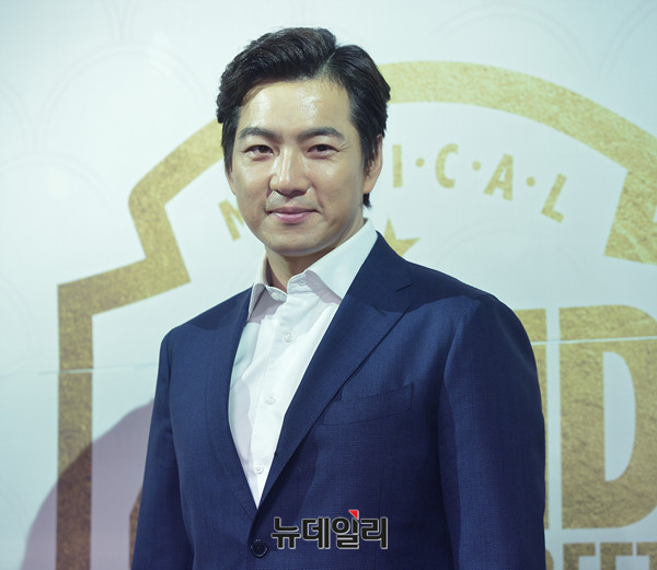 줄리안 마쉬 역을 맡은 배우 송일국이 질문에 답하고 있다. 송일국은 이번 작품으로 첫 뮤지컬 무대에 선다.