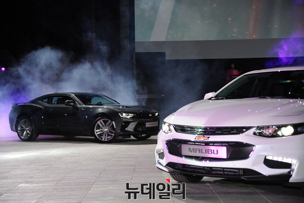 한국지엠이 2016 부산모터쇼 전야제 행사 'GM 프리미어 나이트'를 1일 오후 부산 해운대 영화의 전당에서 열고 플러그인전기차 2세대 볼트와 고성능 스포츠카 카마로SS를 국내 최초로 공개했다.