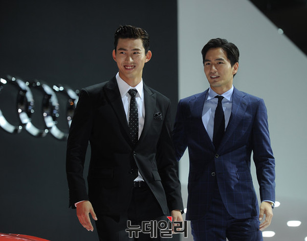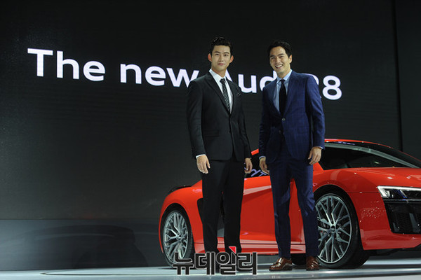 옥택연과 이진욱이 2일 오후 부산 벡스코에서 열린 '2016 부산국제모터쇼' 언론공개 행사 아우디부스