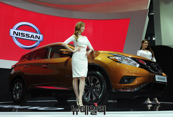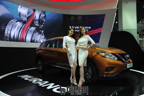 레이싱모델 이효영-양미리내가 2일 오후 부산 벡스코에서 열린 '2016 부산국제모터쇼' 언론공개 행사 닛산