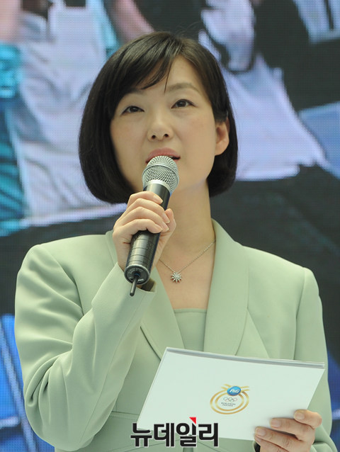 한국P&G 김주연 사장이 3일 오전 서울 영등포 타임스퀘어에서 리우올림픽 땡큐맘 캠페인의 일환으로 열린 '응답하라 오천만' 캠페인 행사에서 인사말을 하고 있다.