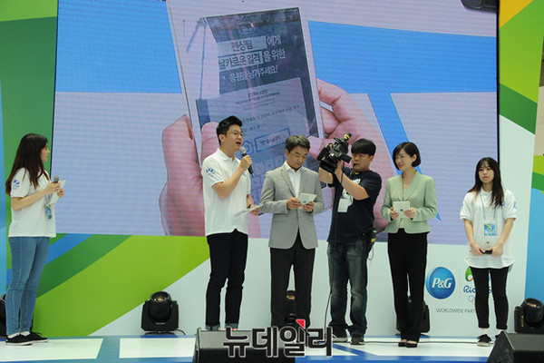 한국P&G는 3일 오전 서울 영등포 타임스퀘어에서 리우올림픽 땡큐맘 캠페인의 일환으로 '응답하라 오천만' 캠페인 행사를 개최했다.