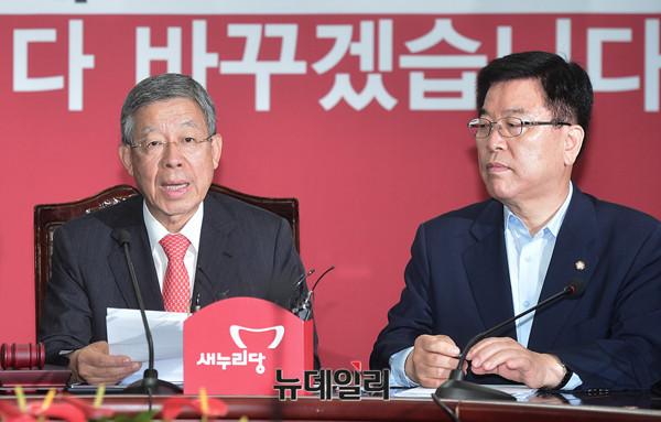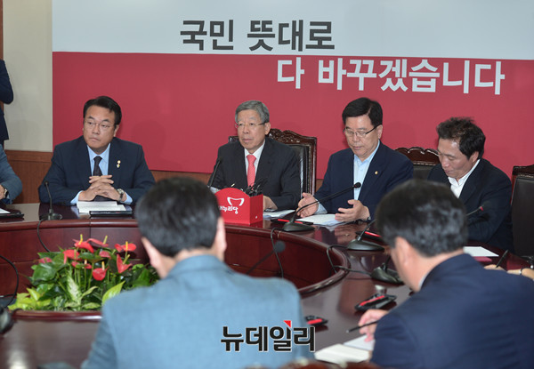 새누리당 김희옥 비상대책위원회 위원장이 7일 오전 서울 여의도 새누리당사에서 진행된 혁신비상대책위원회 회의에 참석해 모두 발언하고 있다.