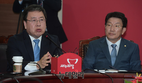새누리당 오정근 비상대책위원이 7일 오전 서울 여의도 새누리당사 회의실에서 열린 혁신비상대책위원회 회의에 참석해 모두 발언하고 있다.
