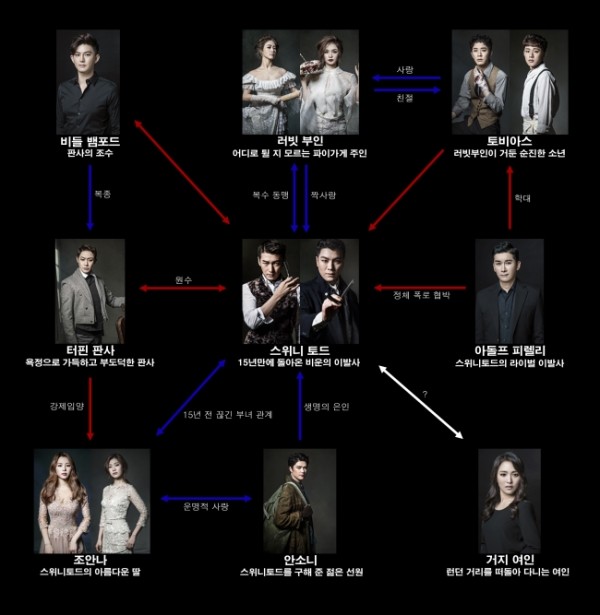 뮤지컬 '스위니토드'가 2차 티켓오픈을 앞두고 인물관계도를 공개했다.