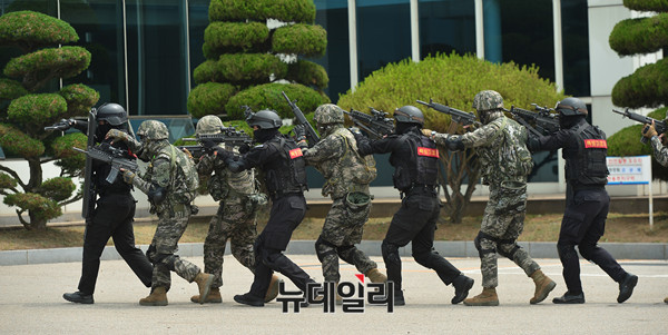 이날 공개된 훈련은 적이 한국가스공사에 난입해 폭발물을 설치하는 상황을 가정해 진행했다. 신속기동부대의 수색팀과 헌병특경팀, 임험성폭발물개척팀, 해군2함대사령부 헌병특임대와 UDT대원들이 합동으로 테러범을 진압했다.