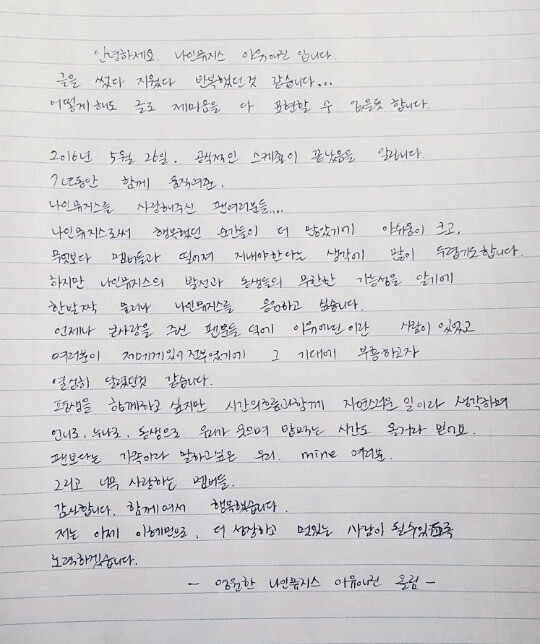 걸그룹 나인뮤지스 멤버 이유애린과 민하가 팀을 탈퇴한다.나인뮤지스 소속사 스타제국은 8일 "이유애린(본명 이혜민) 양과 민하(박민하) 양의 편지와 관련해 당사의 입장을 전해드린다"며 "두 사람은 전속 계약 만료와 함께 공식적으로 나인뮤지스 졸업을 최종 결정했다"고 밝혔다.소속사는 "이번 결정은 당사뿐만 아니라 나인뮤지스 멤버들에게도 쉽지 않은 선택이었으나 이유애린 양과 민하 양이 지난 7년이라는 시간 동안 나인뮤지스라는 이름으로 쉼 없이 달려와 주었기에 두 멤버의 입장을 충분히 이해하고 의견을 존중하기로 했다"고 설명했다.이어 "졸업과 동시에 새로운 출발을 결정한 이유애린 양과 민하 양의 앞날을 응원한다"면서 "나인뮤지스는 올 여름 컴백을 목표로 공식적인 유닛 활동을 준비 중에 있으며, 유닛 활동에 대한 구체적인 사항은 빠른 시일 내 전해드릴 예정"이라고 덧붙였다.마지막으로 스타제국은 "항상 나인뮤지스를 응원해주시고 사랑해주시는 팬 여러분들을 위해 당사와 나인뮤지스 멤버들은 더욱 최선을 다할 것이며, 앞으로 더 좋은 음악과 무대로 팬 여러분들을 찾아뵙겠다"고 전하며 공식입장을 마무리지었다.