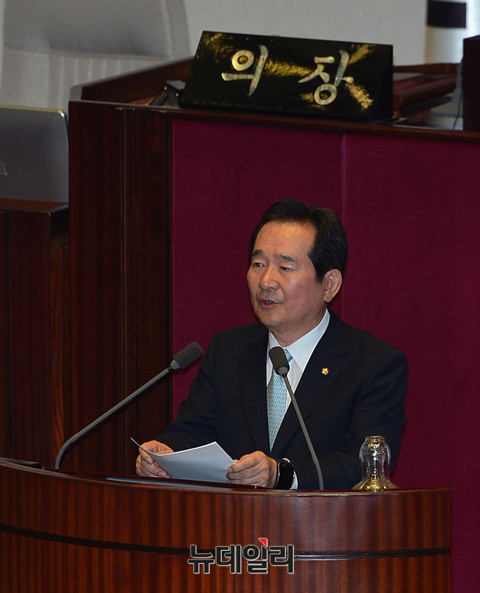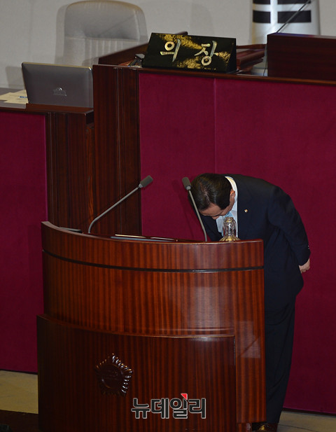 정세균 국회의장은 이날 본회의에서 선출된 뒤 단상에 올라 "20대 총선 민심으로 만들어진 여소야대, 다당체제 하에서 국회의장에게 부여된 막중한 소임에 최선을 다하여 국민에게 힘이 되는 국회를 만드는데 모든 역량을 바치겠다"고 강조했다.