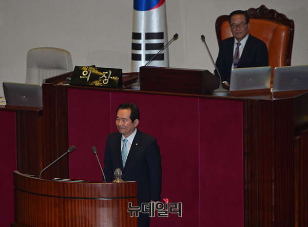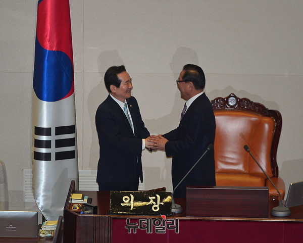 정 신임 국회의장은 이날 본회의에서 선출된 뒤 단상에 올라 "20대 총선 민심으로 만들어진 여소야대, 다당체제 하에서 국회의장에게 부여된 막중한 소임에 최선을 다하여 국민에게 힘이 되는 국회를 만드는데 모든 역량을 바치겠다"고 강조했다.