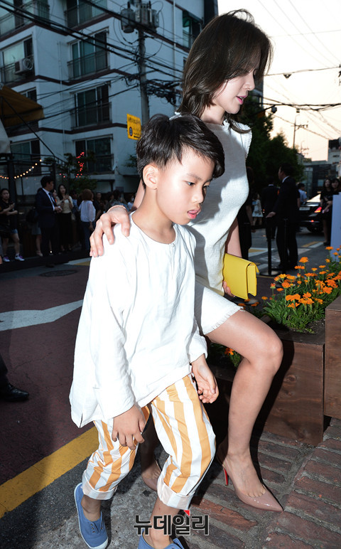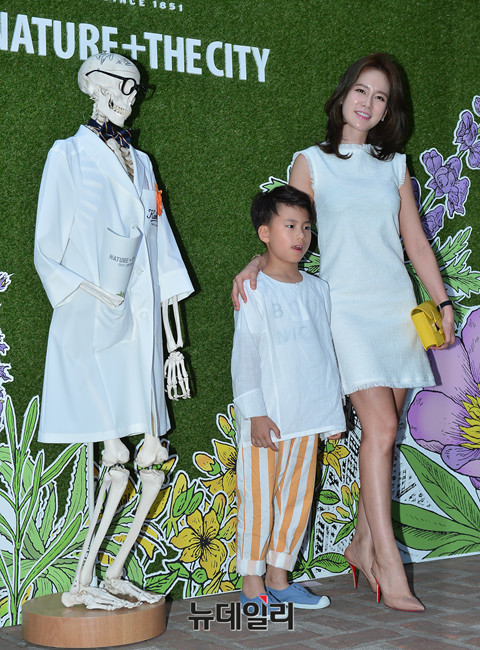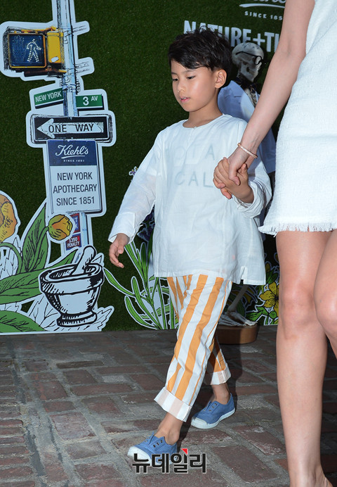 코스메틱 브랜드 키엘(KIEHL'S)이 9일 오후 가로수길 피프티피프티 갤러리에서 2016 사회공헌 캠페인 '네이처앤더시티(NATURE+THE CITY)' 시작을 알리는 포토행사를 진행했다. 캠페인에 참석한 이혜원과 아들 안리환이 입장하고 있다.