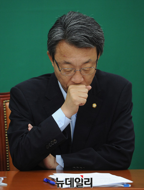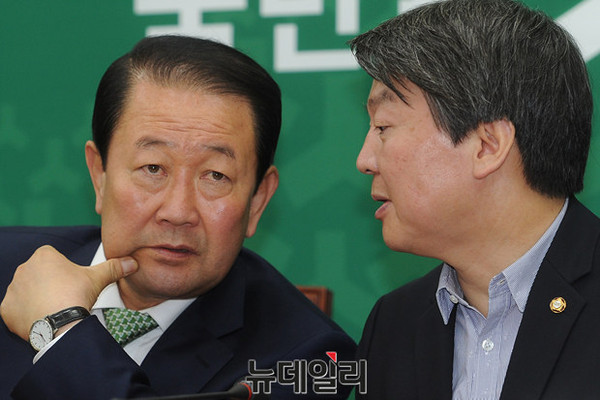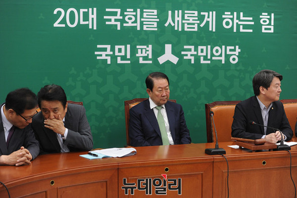 김수민 국민의당 의원이 억대의 불법정치자금 수수 혐의로 검찰고발된 가운데 안철수 국민의당 공동대표와 박지원 원내대표가 10일 오전 서울 여의도 국회에서 열린 최고위원회의에서 당황스러운 표정을 짓고 있다.