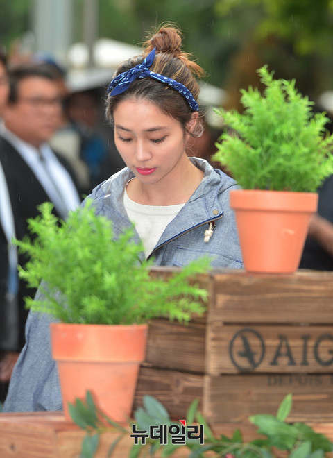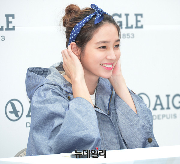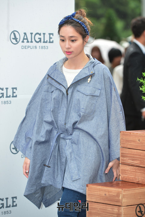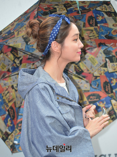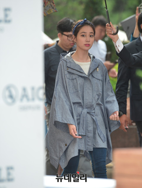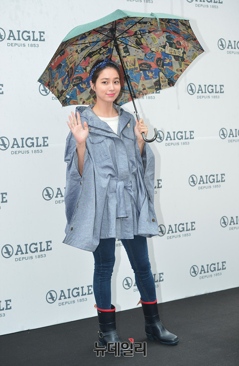 배우 이민정이 11일 오후 롯데백화점 본점에서 열린 '아웃도어 브랜드 에이글, 이민정 팬사인회'에 참석해 포토타임을 갖고 있다. 야외에서 진행된 팬사인회에 참석한 이민정은 갑작스런 소나기에 레인코트에 러버부츠와 우산을 들고 등장했다.