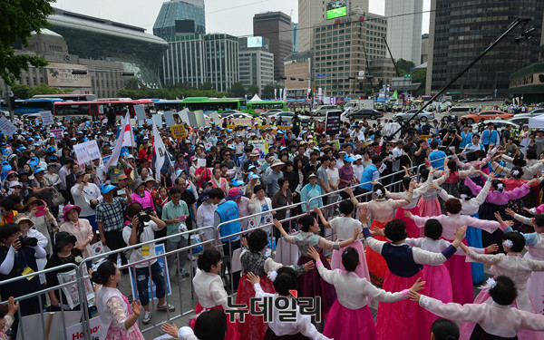 한국교회연합은 동성애를 반대를 국민대회를 서울광장 인근 곳곳에서 열고, 기도회로 맞불집회를 이어갔다. 이들은 서울광장에 퀴어축제를 허가해 준 박원순 서울시장을 비판하는 피켓을 들기도 했다.