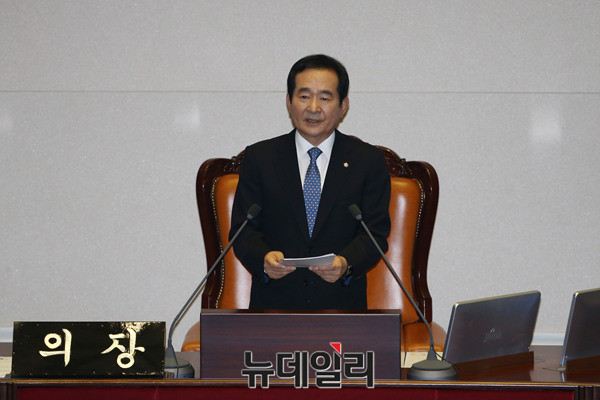 정세균 국회의장이 13일 오전 서울 여의도 국회에서 열린 20대 국회 개원식에서 선서를 하고 있다.