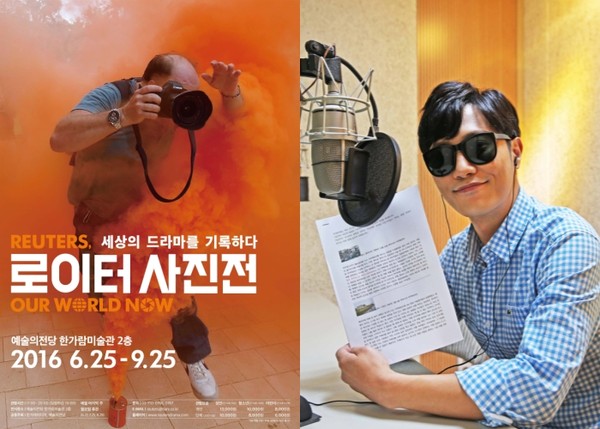 중저음 목소리가 매력적인 배우 진구가 재능기부에 나선다.진구는 세계 최초 대규모 보도사진전인 '로이터 사진전; 세상의 드라마를 기록하다 展' 오디오 가이드 제작에 목소리 재능기부로 참여한다.'로이터 사진전'의 오디오가이드는 전시회를 대표하는 주요사진 20여점의 설명으로 제작됐으며, 각 사진을 찍은 취재원인 기자들의 생생한 메모와 다이어리를 바탕으로 기획되었다.진구는 최근 그의 진솔한 이야기를 담은 포토에세이 '온리(Only)'를 출간하는 등 바쁜 스케줄을 소화하고 있음에도 '로이터 사진전' 목소리 재능기부 참여 제안을 흔쾌히 수락했다.녹음 전 미리 전시작품과 가이드 대본을 살펴본 진구는 "기자들의 생생한 메모와 다이어리 덕분에 마치 현장에 있는 듯한 느낌을 받았다. 막연하고 어렵게 생각한 보도사진과 가까워진 것 같고, 보도사진에 대해 다시 생각하게 되는 계기가 되었다"며 참여 소감을 밝혔다.진구의 오디오가이드 판매 수익금 일부는 아동학대로 고통 받는 아이들이 웃음을 되찾을 수 있는 일에 도움이 되고자 홀트아동복지회 학대피해아동후원에 '진구' 이름으로 기부된다.1851년부터 현재까지 160여년 동안 찍은 사진들 중 엄선해 기획한 '로이터 사진전'은 20세기 발생한 굵직한 지구의 사건들을 비롯해 역사적인 순간들, 인간의 희로애락을 담은 감정의 기록, 자연의 아름다움 등 다양한 콘셉트의 사진이 전시된다.6월 25일부터 9월 25일까지 예술의전당 한가람미술관에서 전시되며, 진구의 목소리로 제작된 오디오가이드는 현장에서 청취할 수 있다.[사진=로이터사진전 사무국]