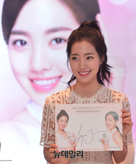 필립스코리아 모델 진세연이 14일 오전 현대백화점 무역점에서 여름 휴가철을 맞아 '토탈 뷰티케어 솔루션'을 제안하는 팬사인회에 참석해 포즈를 취하고 있다.