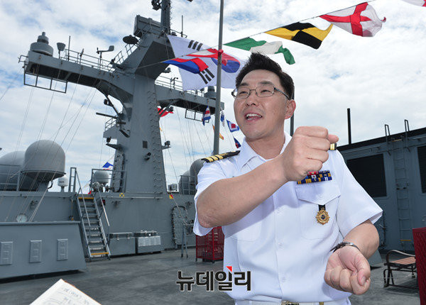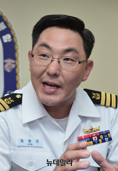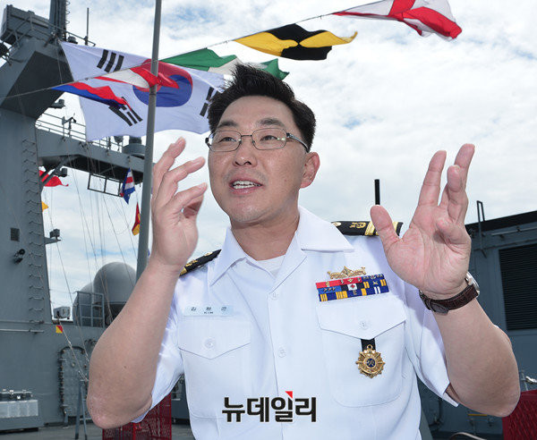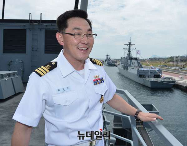 천왕봉함 함장 김형곤(해사50기) 중령과 해군 상륙함에 관한 인터뷰가 지난 3일 제주해군기지 정박중인 천왕봉함에서 진행됐다. 천왕봉함은 지난 3일 제주해군기지에서 열린 제17회 함상토론회에 선정됐다.