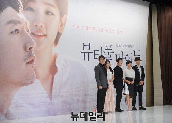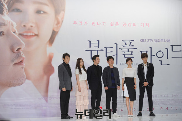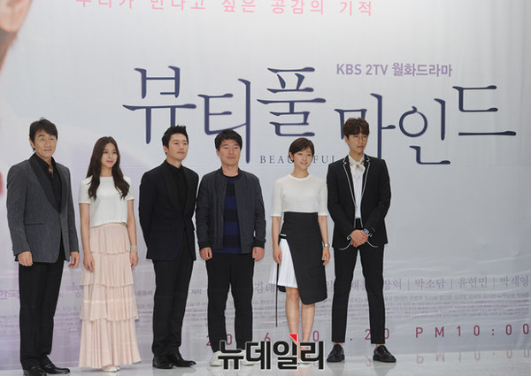 KBS 2TV 월화드라마 '뷰티풀 마인드' 제작발표회가 14일 오후 서울 영등포 타임스퀘어 아모리스홀에서 열렸다. 출연 배우들이 함께 포즈를 취하고 있다.