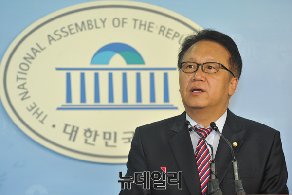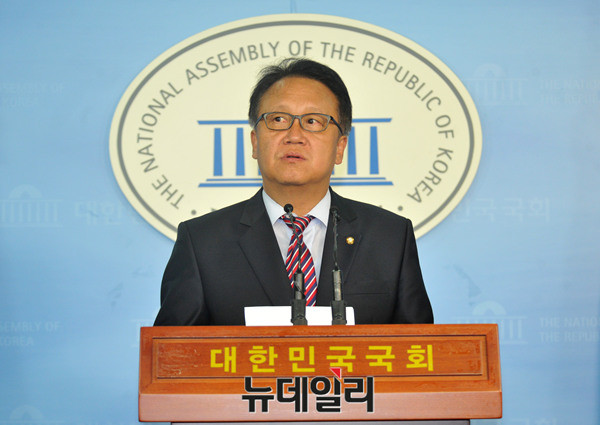 더불어민주당 민병두 의원이 15일 오전 국회 정론관에서 조선해운산업 부실화 진상 규명 위한 국정조사 추진을 촉구하고 있다.