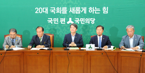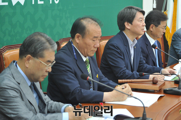 국민의당 안철수 상임공동대표, 천정배 공동대표가 15일 오후 국회에서 당대표실에서 전국시도교육감협의회 이재정 경기도교육감, 장휘국 광주시교육감과 면담을 갖고 있다.