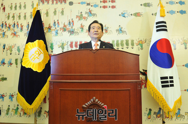 정세균 국회의장이 16일 국회 의장접견실에서 열린 취임 기자간담회에 참석해 모두발언을 하고 있다.