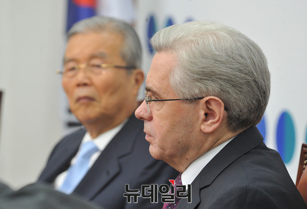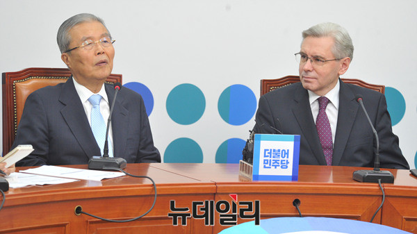 김종인 더불어민주당 비상대책위 대표가 17일 오전 국회 당대표실에서 알렉산드르 티모닌 주한 러시아 대사와 면담하고 있다.