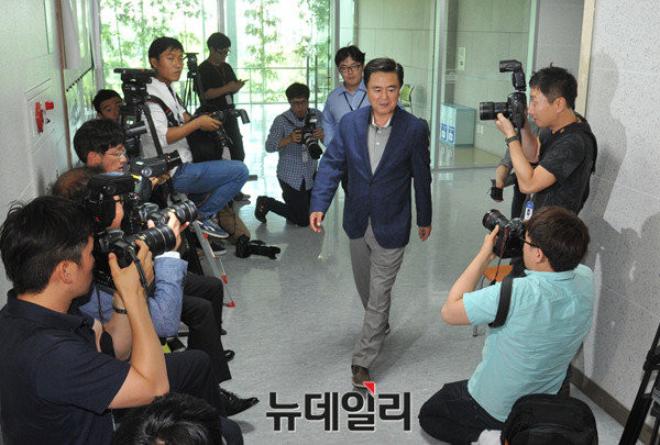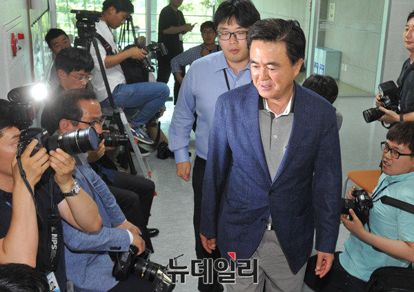 새누리당 김태흠 의원이 17일 오후 국회 의원회관 열린 유승민 전 원내대표 복당 사태에 대한 대책 수립을 위한 회동에 참석하기 위해 입장하고 있다.