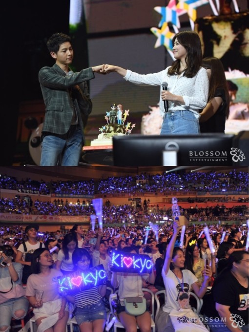 송혜교가 송중기와의 끈끈한 의리를 과시했다.송중기가 지난 17일 중국 성도 전자과학대학교 체육관에서 열린 '2016 아시아 투어 팬미팅'을 통해 6500여명의 팬들과 만났다.이날 팬미팅에는 드라마 '태양의 후예'에서 호흡을 맞춘 송혜교가 깜짝 손님으로 등장해 능숙한 중국어로 인사를 전했다.송혜교는 "주위 분들이 송중기에 대해 칭찬을 많이 하셔서 작품을 하기 전부터 기대를 갖고 있었다. 그런데 촬영을 하면서 진실되고 깊은 사람이라는 걸 알게 되었고, 멋있는 친구라고 생각한다. 이렇게 좋은 자리에 초대해 주셔서 감사하다"고 말했다.이에 송중기는 "촬영하면서 송혜교 선배님께 많은 도움을 받았고 배웠다. 정말 든든하고 고마운 선배님이자 파트너였다"며 "먼 곳까지 직접 와주셔서 진심으로 감사드린다"고 화답했다.이후 송중기와 송혜교는 '태양의 후예' 명장면 재연과 '1분 안에 서로의 자화상 그리기' 등의 게임을 하며 특별한 시간을 보냈고, O.S.T 수록곡인 'Always'를 함께 열창해 이목을 끌었다.