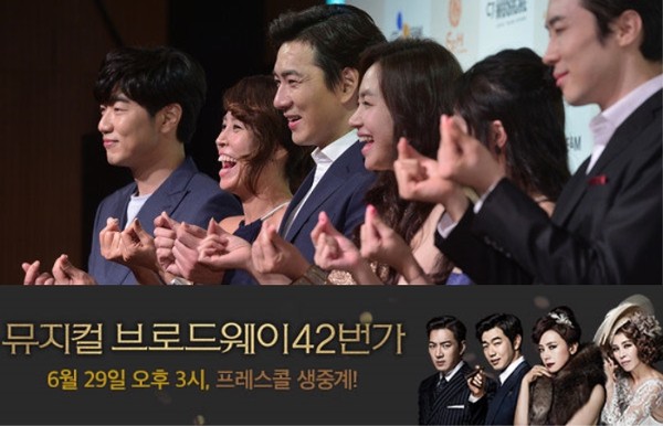 한국초연 20주년을 맞은 뮤지컬 '브로드웨이 42번가'가 네이버 책문화와 함께 프레스콜 현장을 네이버 TV캐스트를 통해 생중계한다.6월 29일 오후 3시에 열리는 '브로드웨이 42번가' 프레스콜에는 배우 송일국, 이종혁, 최정원, 김선경, 임혜영, 에녹 등 전 출연진이 함께할 예정이다.네이버 생중계에서는 'Stair Scene' 무대를 비롯해 백스테이지 셀프 카메라영상 등 다양한 콘텐츠를 라이브로 국내 최초 선보인다.한 편의 뮤지컬이 무대에 오르기까지의 과정을 세밀하게 표현해 '백스테이지 뮤지컬'로 일컬어지는'브로드웨이 42번가'의 생생한 매력을 더욱 잘 보여줄 수 있을 것으로 기대된다.또, 네이버 책문화 블로그를 통해 사전 이벤트를 펼친다.'브로드웨이 42번가'에 대해 궁금한 점을 댓글로 작성하면 추첨을 통해 공연 초대권을 선물로 제공한다.'브로드웨이 42번가'는 페기소여가 뮤지컬 스타로 성장하는 과정을 그린 작품으로 20주년을 기념해 뉴버전 무대로 새롭게 꾸며진다. 오는 6월 23일 예술의전당 CJ토월극장에서 개막한다.[사진=뉴데일리 DB, CJ E&M]