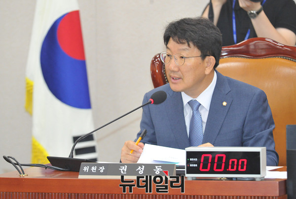 권성동 법사위원장이 20일 오전 국회에서 열린 법제사법위원회 전체회의에 참석해 모두발언을 하고 있다.