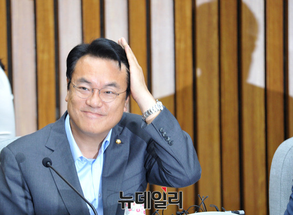 누리당 정진석 원내대표가 21일 오전 국회에서 열린 원내대책회의에 참석해 모두발언을 하고 있다.