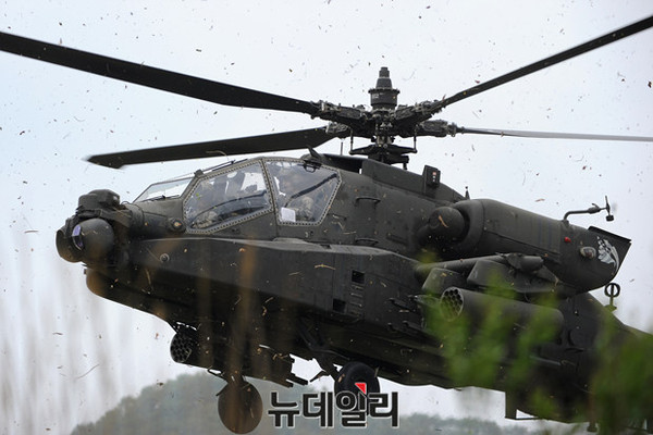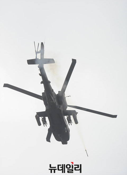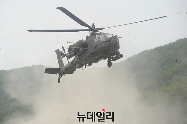 육군 항공작전사령부가 22일 오전 경기도 양평군 비승사격장에서 '6·25 상기 한·미 육군항공 연합 실사격 FTX' 훈련을 실시 했다.