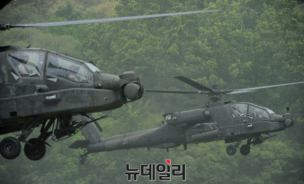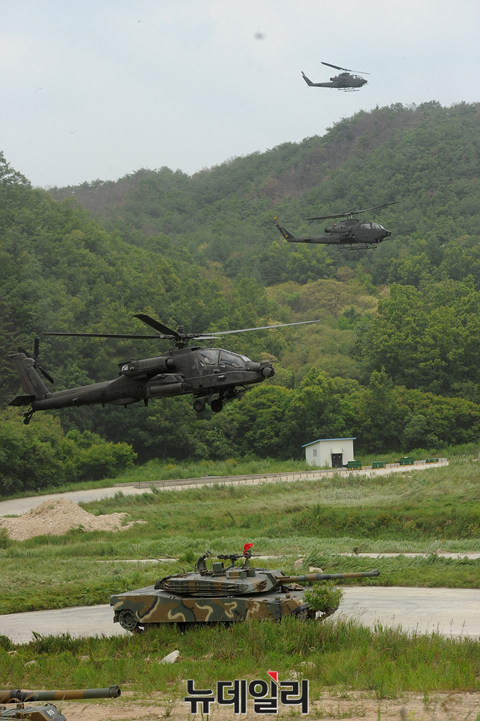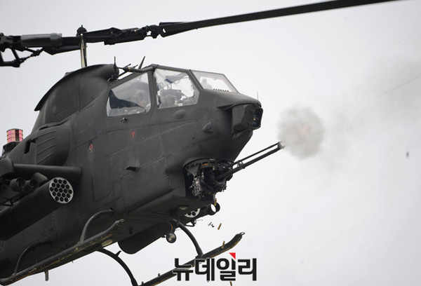 육군 항공작전사령부가 22일 오전 경기도 양평군 비승사격장에서 '6·25 상기 한·미 육군항공 연합 실사격 FTX' 훈련을 실시 했다.