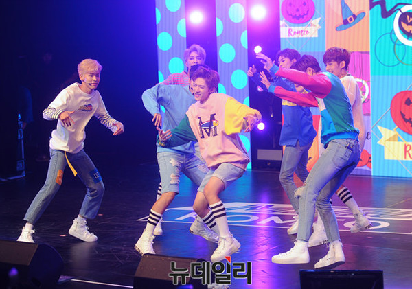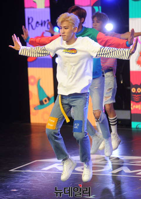 7인조 보이그룹 로미오(윤성, 현경, 카일, 승환, 민성, 마일로, 강민) 민성이 24일 오후 서울 강남구 청담동 일지아트홀에서 열린 세 번째 미니 앨범 '미로(MIRO)' 발매 쇼케이스에서 신곡 무대를 선보이고 있다.