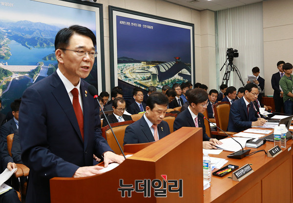 강호인 국토교통부 장관이 24일 국회에서 열린 국토교통위원회 전체회의에 참석해 발언을 하고 있다.