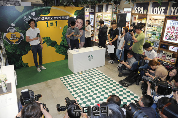 배우 공유가 28일 오전 서울 마포구 서교동 더바디샵에서 열린 '공유와 함께 하는 파괴된 열대 숲 복원' 동참 팬사인회에 참석해 포토타임을 위해 입장하고 있다.