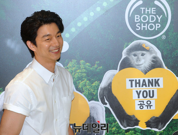 배우 공유가 28일 오전 서울 마포구 서교동 더바디샵에서 열린 '공유와 함께 하는 파괴된 열대 숲 복원' 동참 팬사인회에 참석해 사인을 하고 있다.