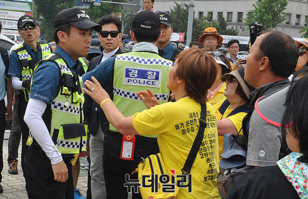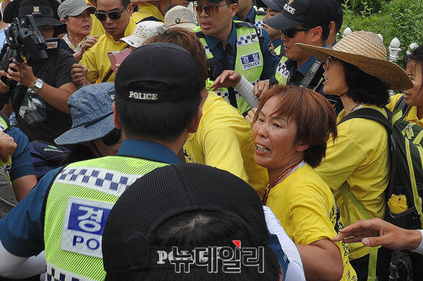 [포토] 피켓 놓고 경찰과 충돌한 4.16연대와 세월호 가족협의회