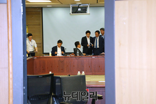 국민의당 안철수, 천정배 상임공동대표 박지원 원내대표 등 소속 의원들이 28일 오전 국회 의원회관에서 비공개 의원총회를 갖고 있다.