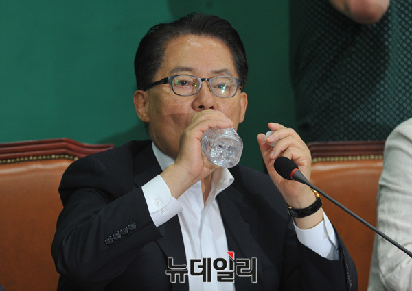 국민의당 박지원 원내대표가 29일 오전 국회 당대표실에서 열린 최고위원회의에 참석해 물을 마시고 있다.