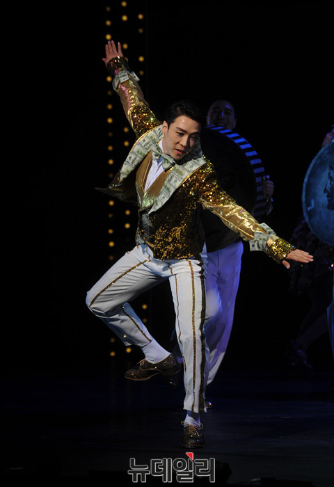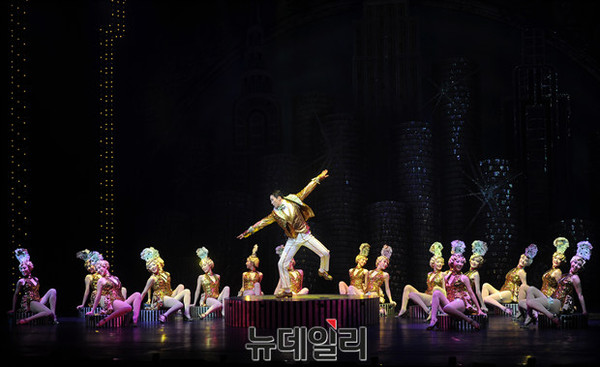 뮤지컬 '브로드웨이 42번가' 프레스콜이 29일 오후 서울 양재동 예술의전당 CJ토월극장에서 개최됐다. 배우 에녹이 화려한 무대를 선보이고 있다.