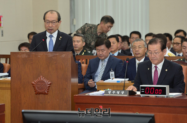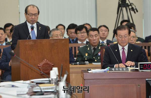 장명진 방위사업청장이 30일 오전 국회 국방위원회 회의장에서 열린 전체회의에서 방위사업청 업무보고를 하고 있다.