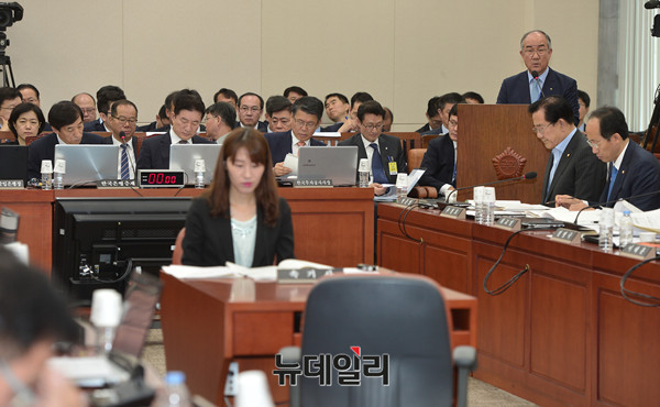 이덕훈 한국수출입은행장이 30일 오전 국회 기재위원회 회의실에서 열린 전체회의에 참석해 업무보고를 하고 있다.