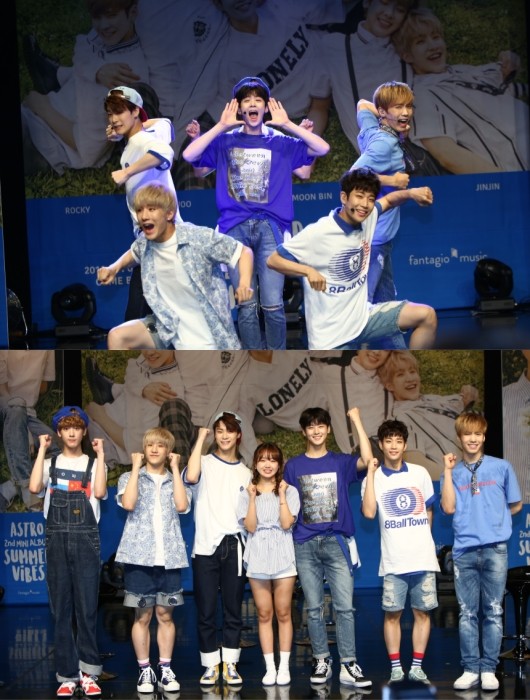 '소년들의 여름' 콘셉트로 돌아온 보이그룹 아스트로(차은우, 문빈, MJ, 진진, 라키, 윤산하)가 본격적인 활동에 돌입한다.아스트로는 6월 30일 서울 청담동에 일지 아트홀에서 진행된 두 번째 미니앨범 '썸머 바이브(Summer Vibes)' 발매 기념 쇼케이스를 가졌다.이날 아스트로는 서정적인 멜로디의 감성적인 팝곡 '불꽃놀이'를 시작으로 앨범 타이틀곡 '숨가빠'의 뮤직비디오 및 퍼포먼스 무대를 연이어 공개하며 이목을 사로잡았다.'숨가빠'의 뮤직비디오는 아스트로를 청량음료로 표현한 감각적인 연출과 상상력을 자극하는 스토리가 돋보였으며, 이들의 익살스러운 연기가 눈길을 끌었다.아스트로는 '숨가빠' 무대에서 시원한 바다가 생각나는 파란색 의상을 입고 파워풀한 댄스를 보여주며 '여름돌'다운 면모를 과시했다. 여기에 마치 우주에 있는 느낌을 들게 하는 듯한 '무중력 댄스', 오락실 두더지 게임을 연상케 하는 '두더지춤' 등의 포인트 안무로 눈을 뗄 수 없게 만들었다.