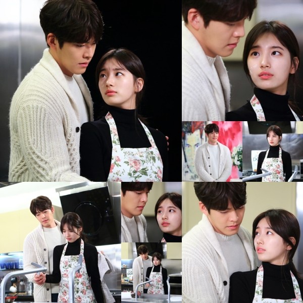 '함부로 애틋하게' 김우빈과 배수지의 애잔한 키친 백허그가 포착됐다.