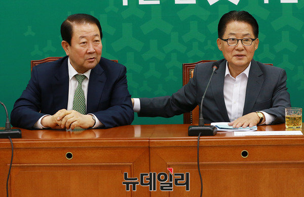 국민의당 박지원 비대위원장이 1일 오전 국회에서 열린 최고위원 중진의원 연석회의에서 박주선 국회부의장과 악수를 나누고 있다.